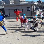 風の吹く涼しい日はお散歩に出かけます。 みんな、お散歩が大好きです。 お外には不思議がいっぱい。ワクワク・ドキドキの体験です! 1・2・1・2‼ 歩くのって、楽しいな♪